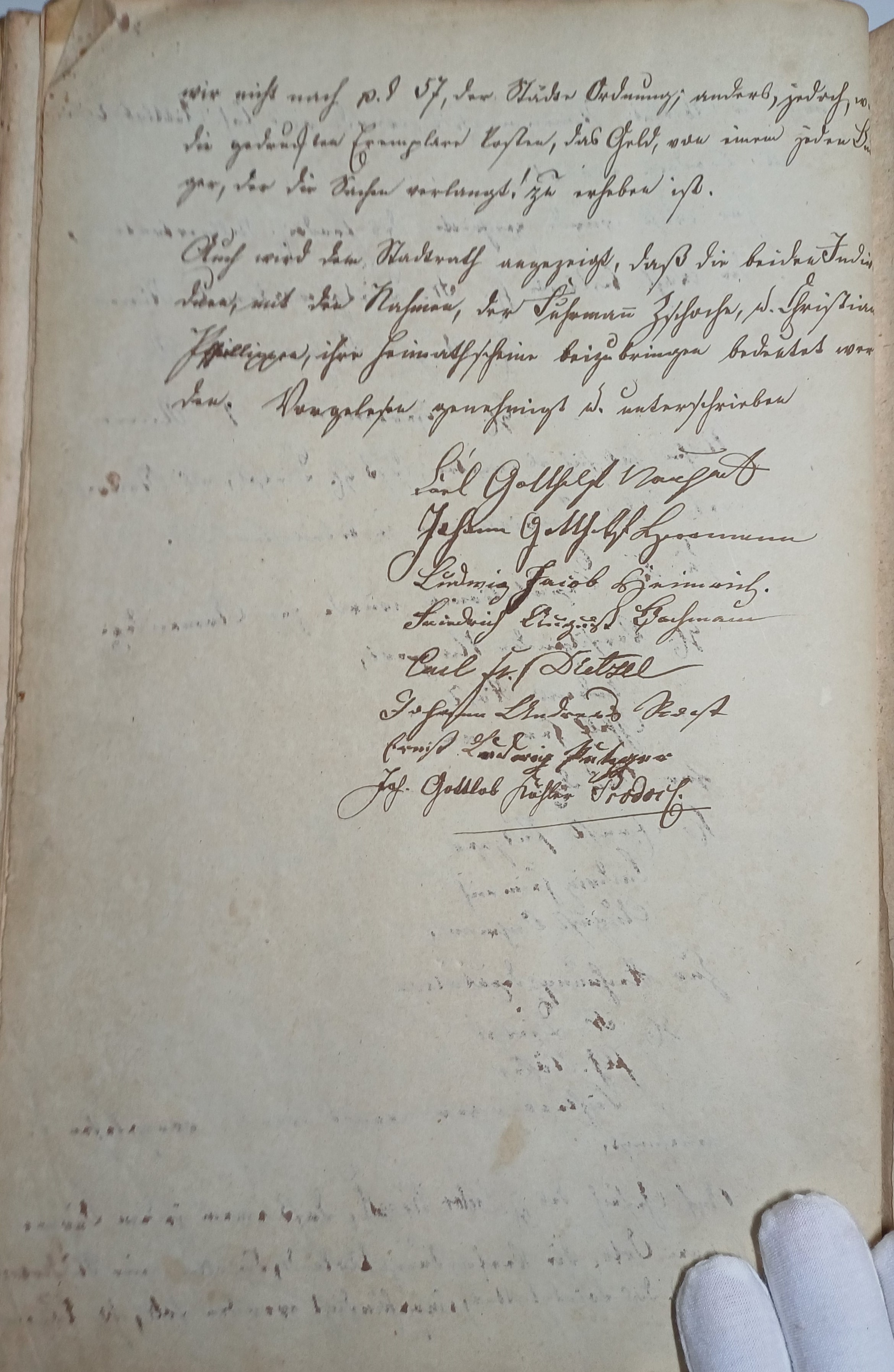 der Wahl ergab sich daß, Joh. Gottlob Köhler mit 7. Stimmen u. H. Fr. Dietzel