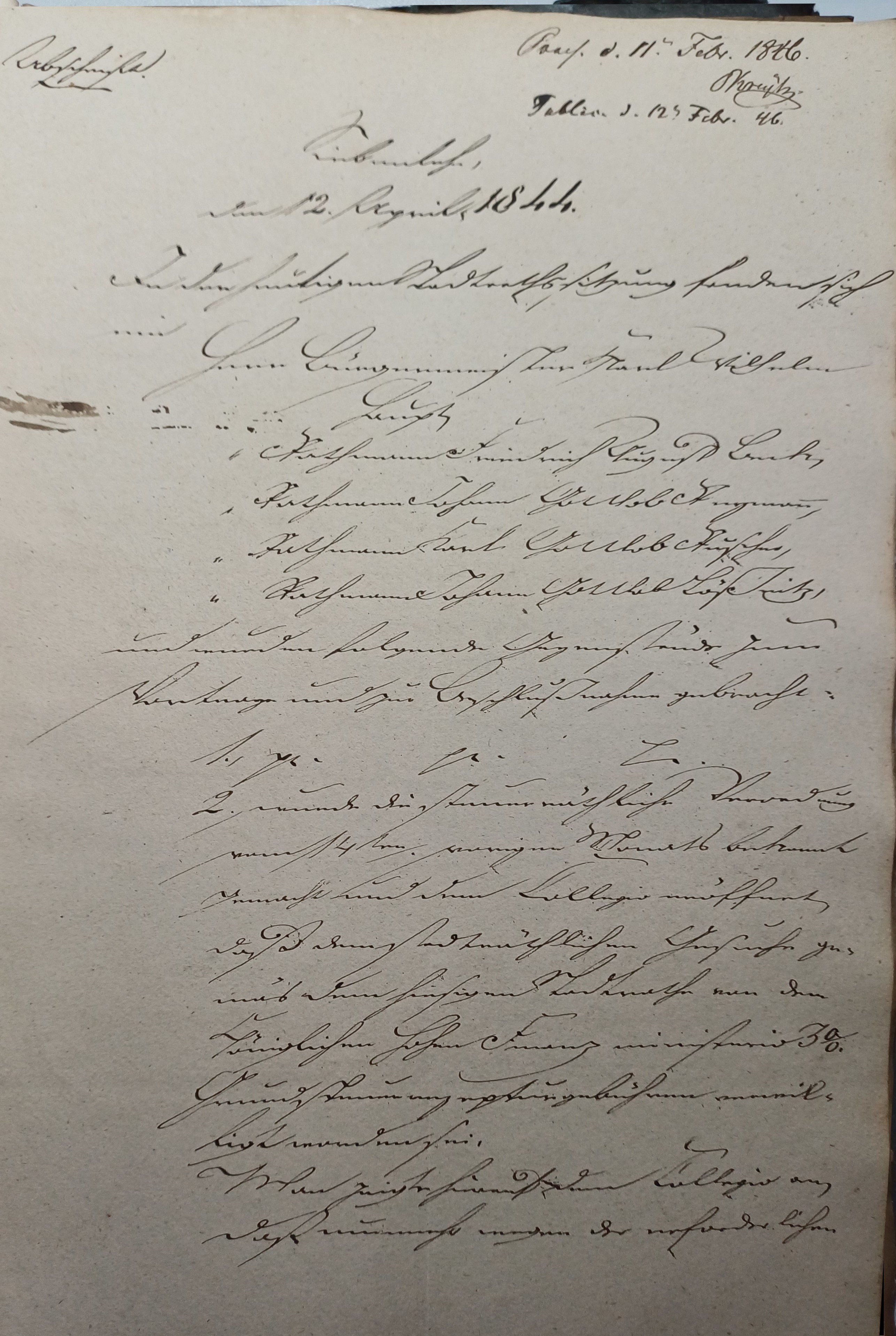 gegenwärtige Fixation, wie bemerkt, bereits am 1sten. Januar dieses Jahres als ins Leben getreten, zu betrachten, auf denjenigen Prozentbetrag aus der Stadtkasse zurüxkzuempfangen, welhces von dem, den 1. Febr. dieses Jahres gewesenen Grundsteuerablieferungstermin an die Stadtkaße eingezahlt worden ist.