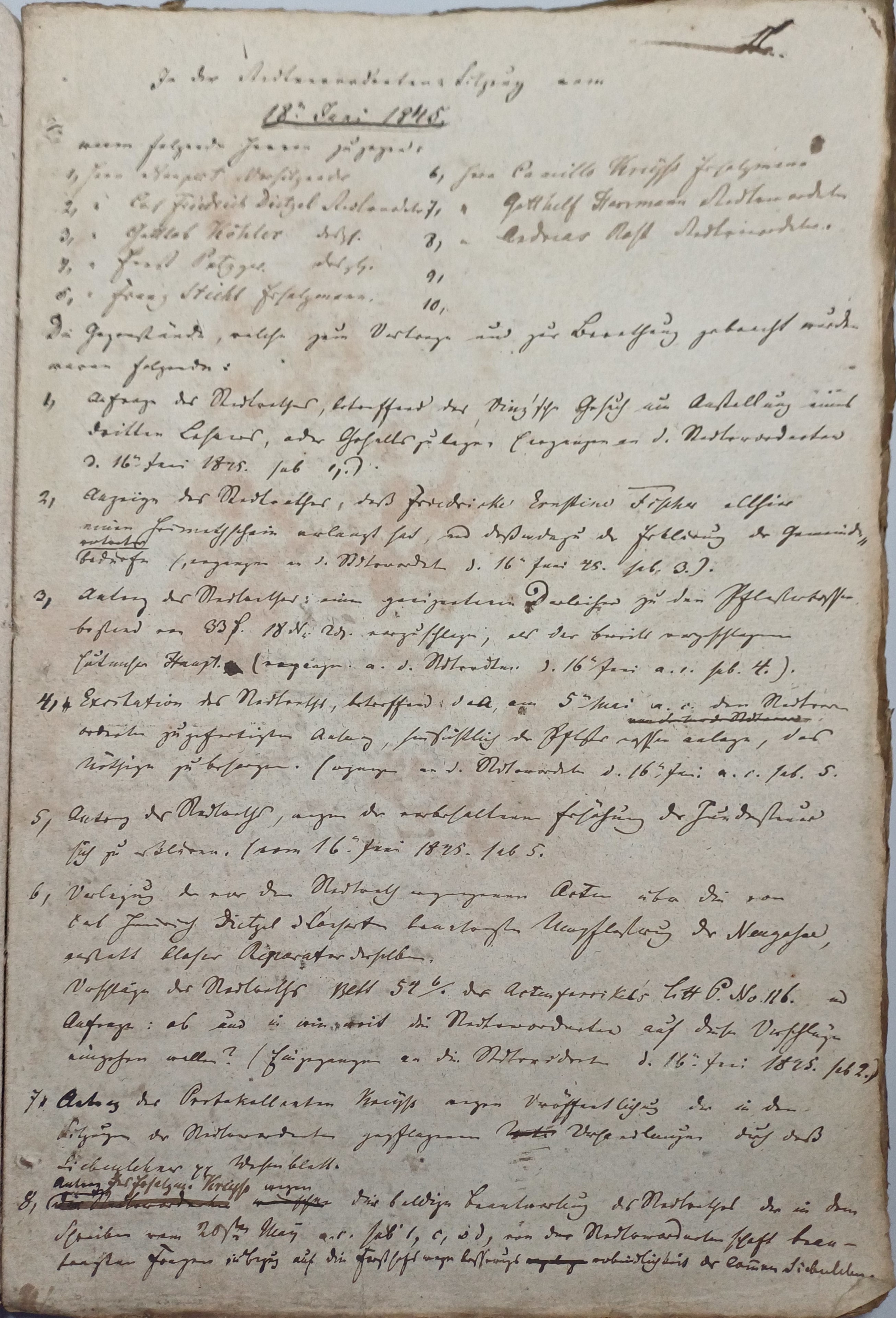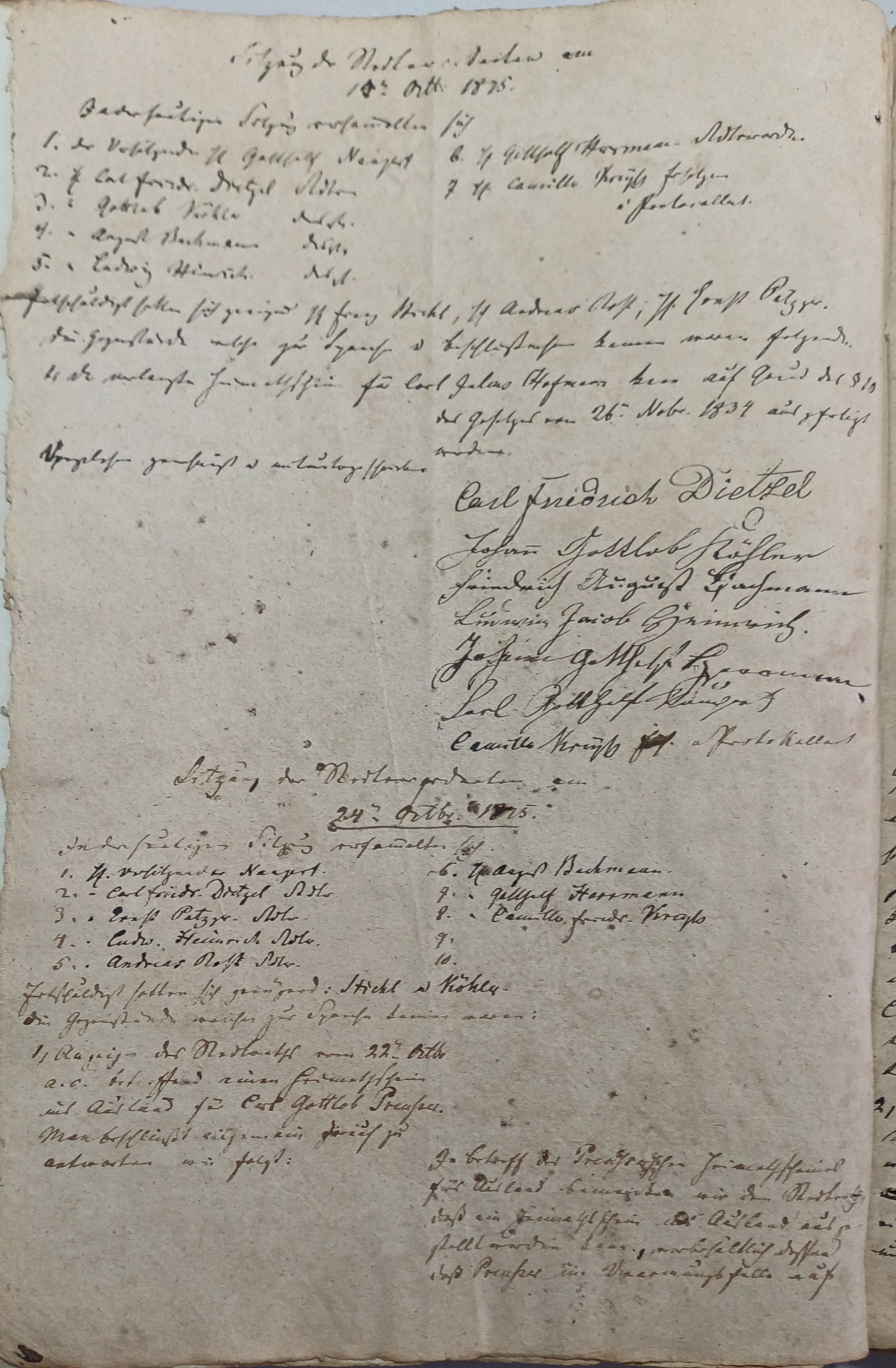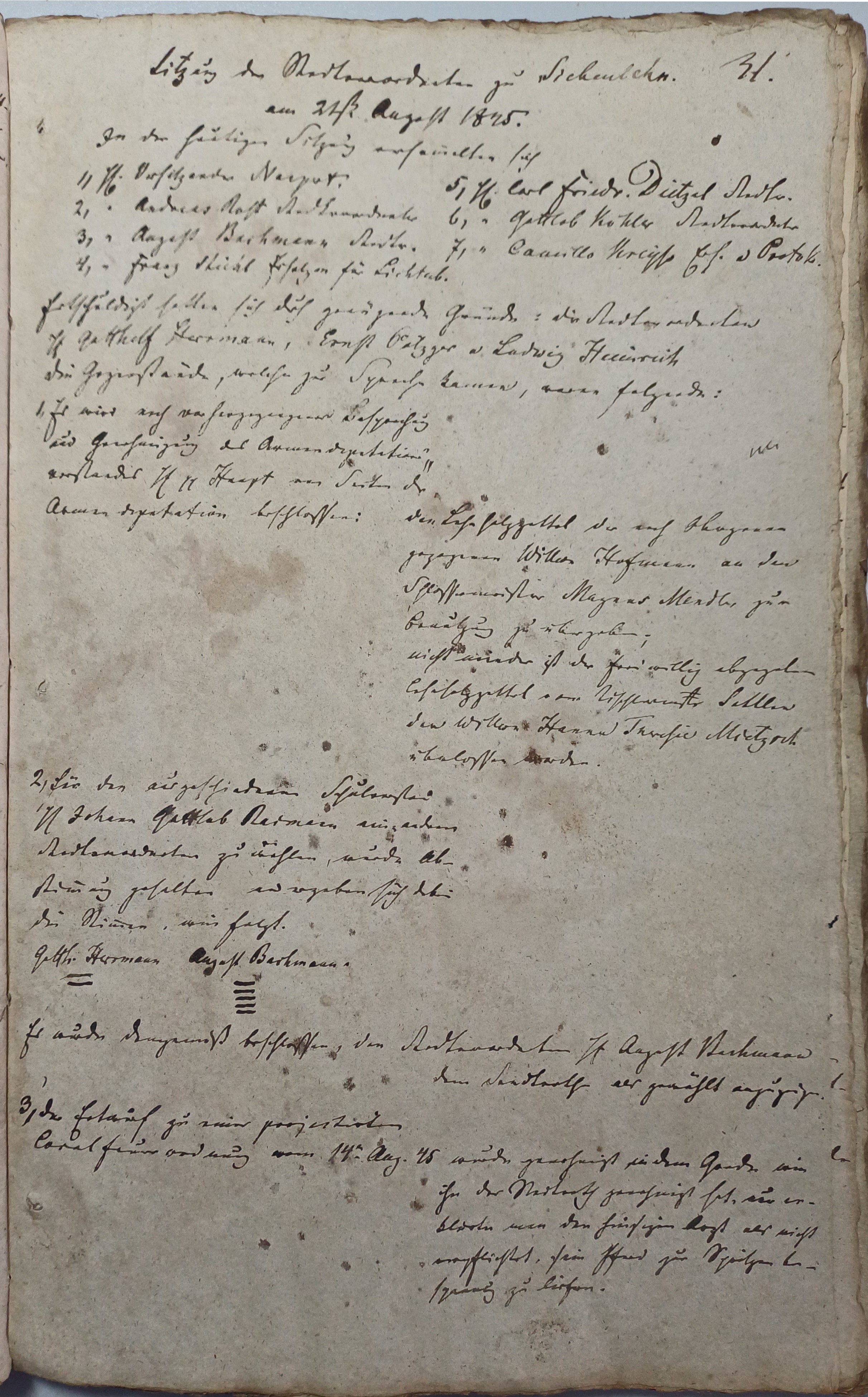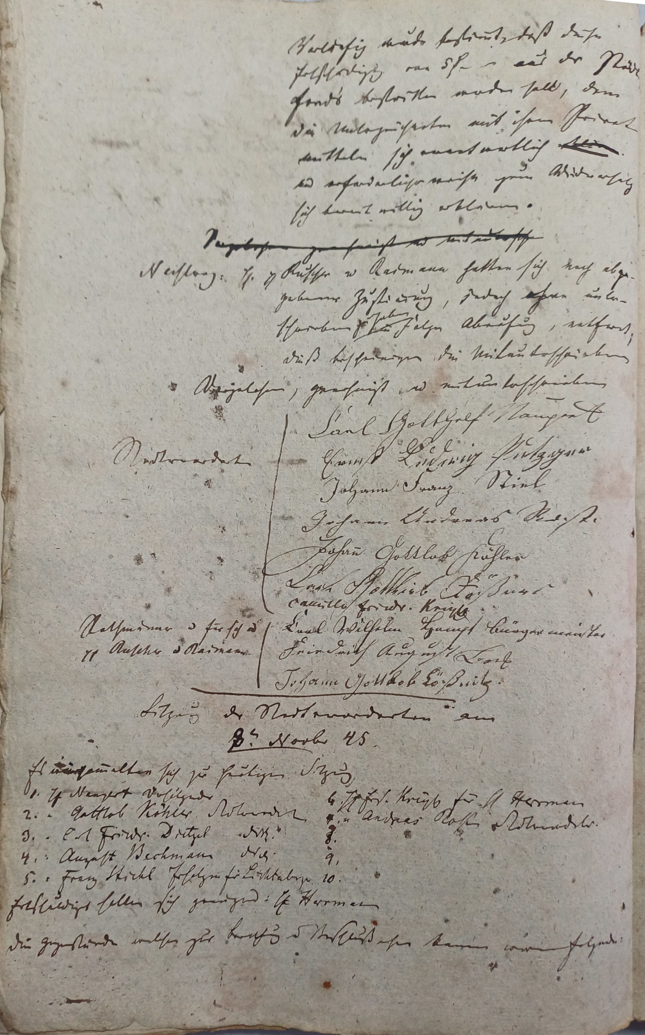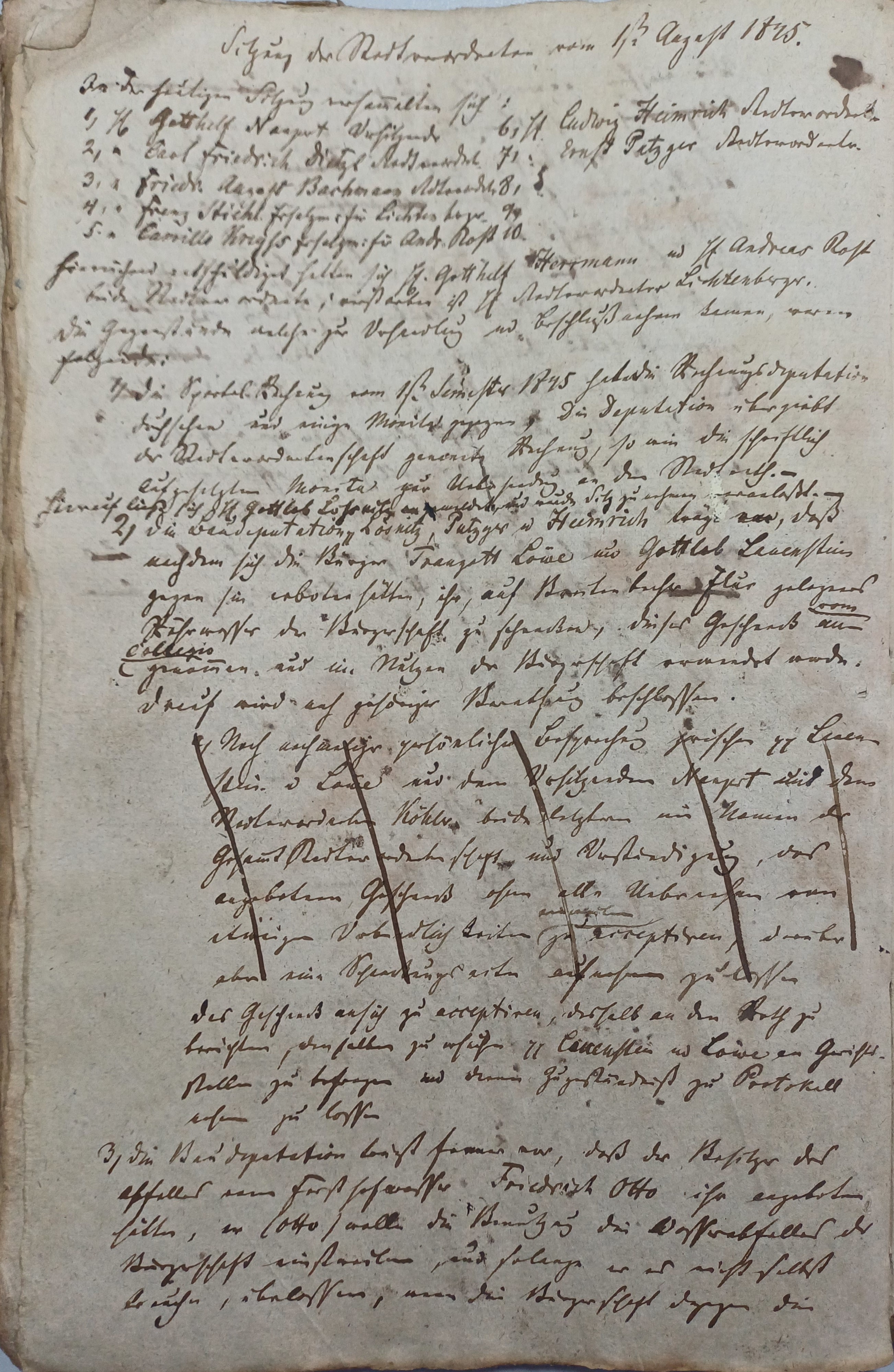 Die Querlinien unterteilen die Protokolle einzelner Sitzungen.