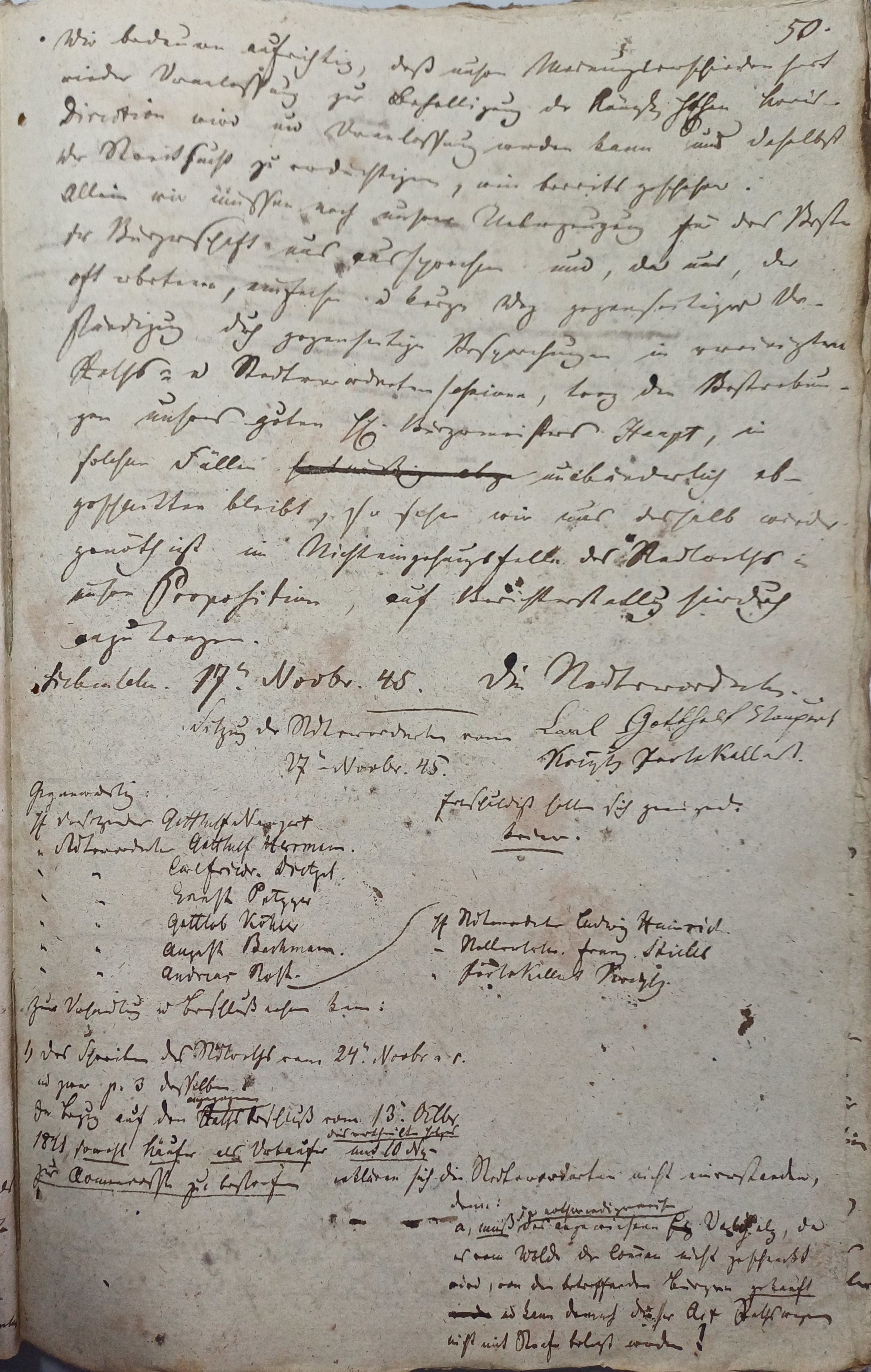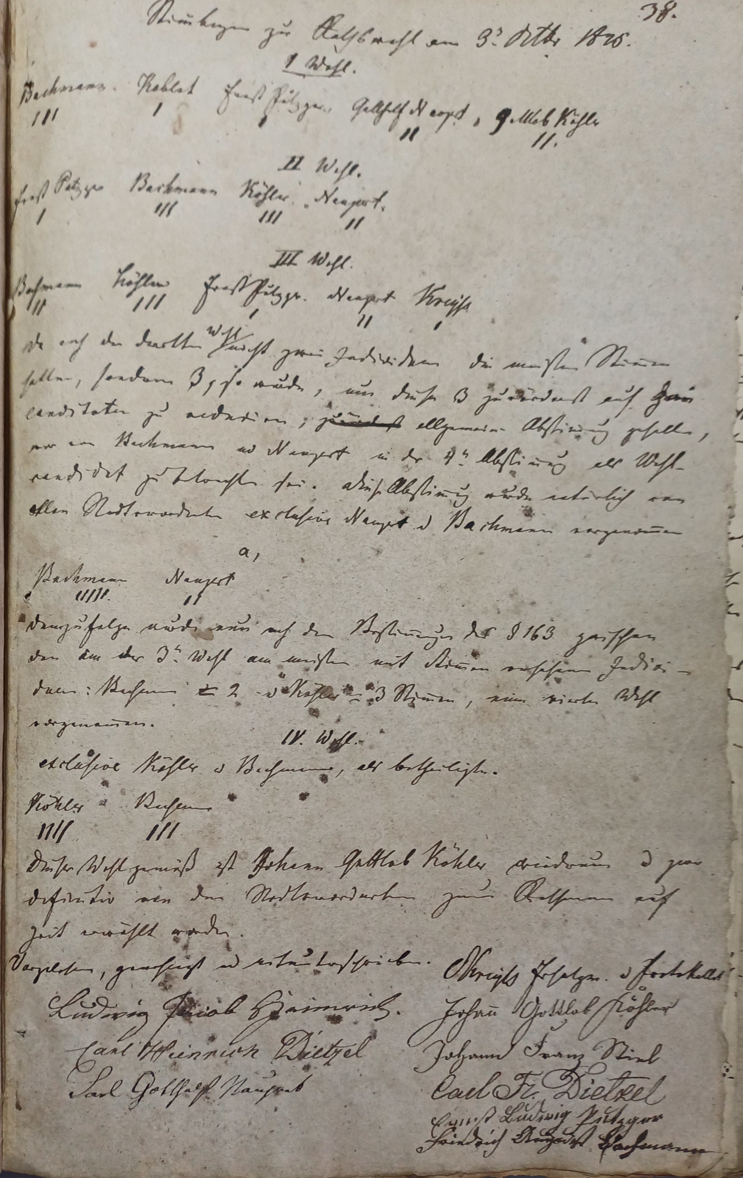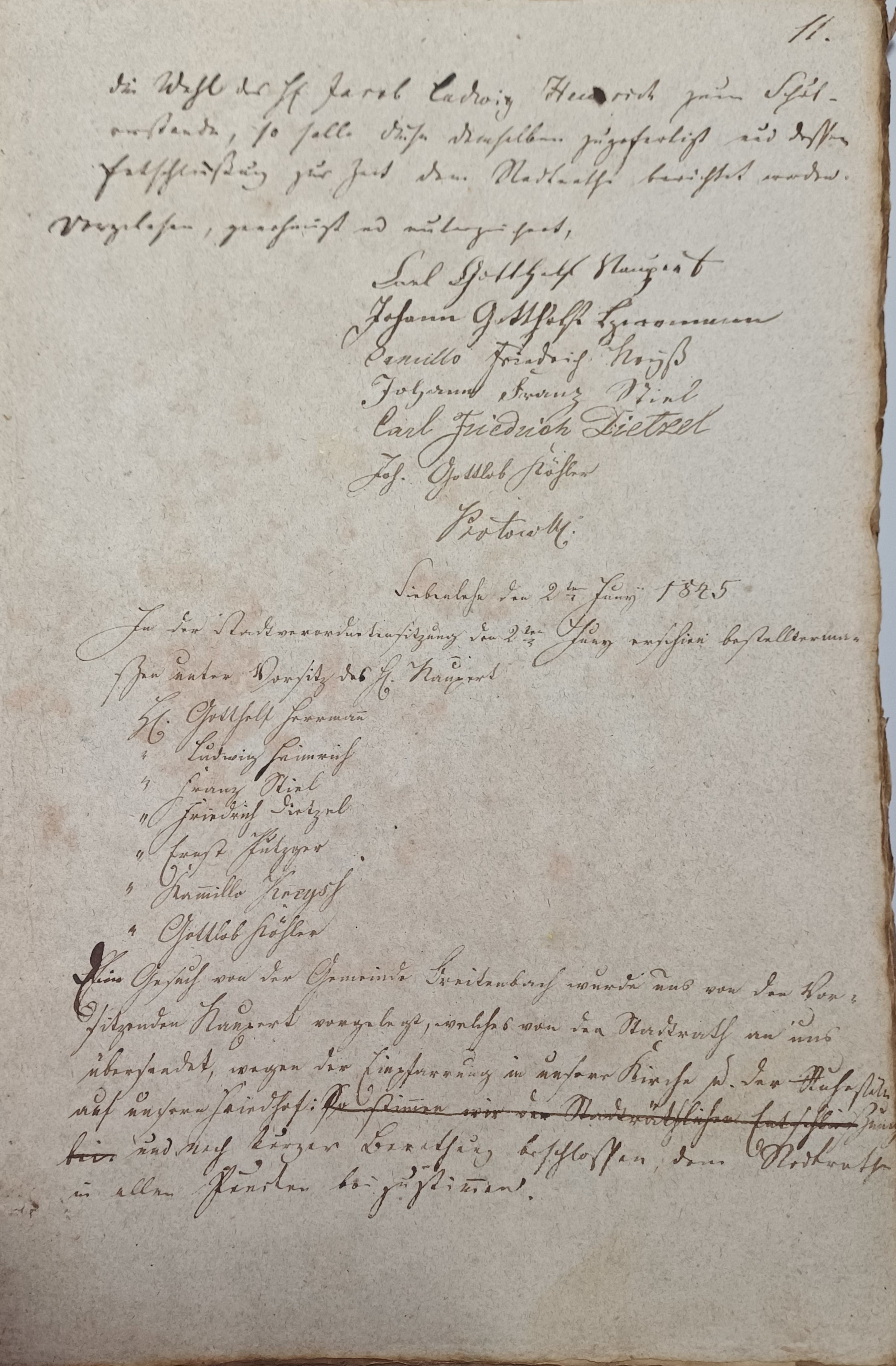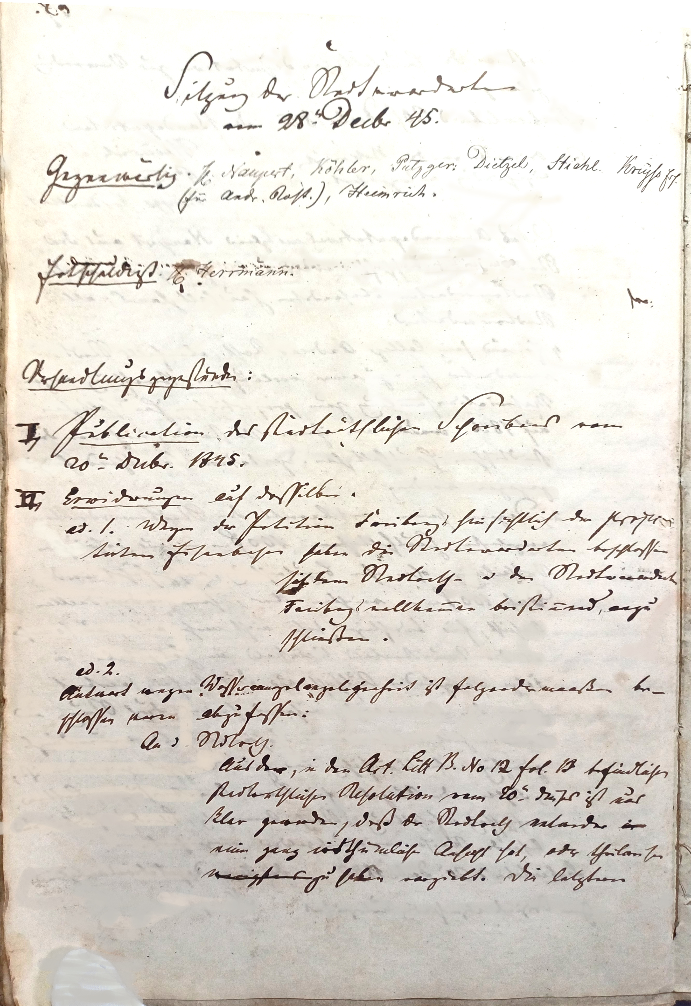 Die Querlinien unterteilen die Protokolle einzelner Sitzungen.