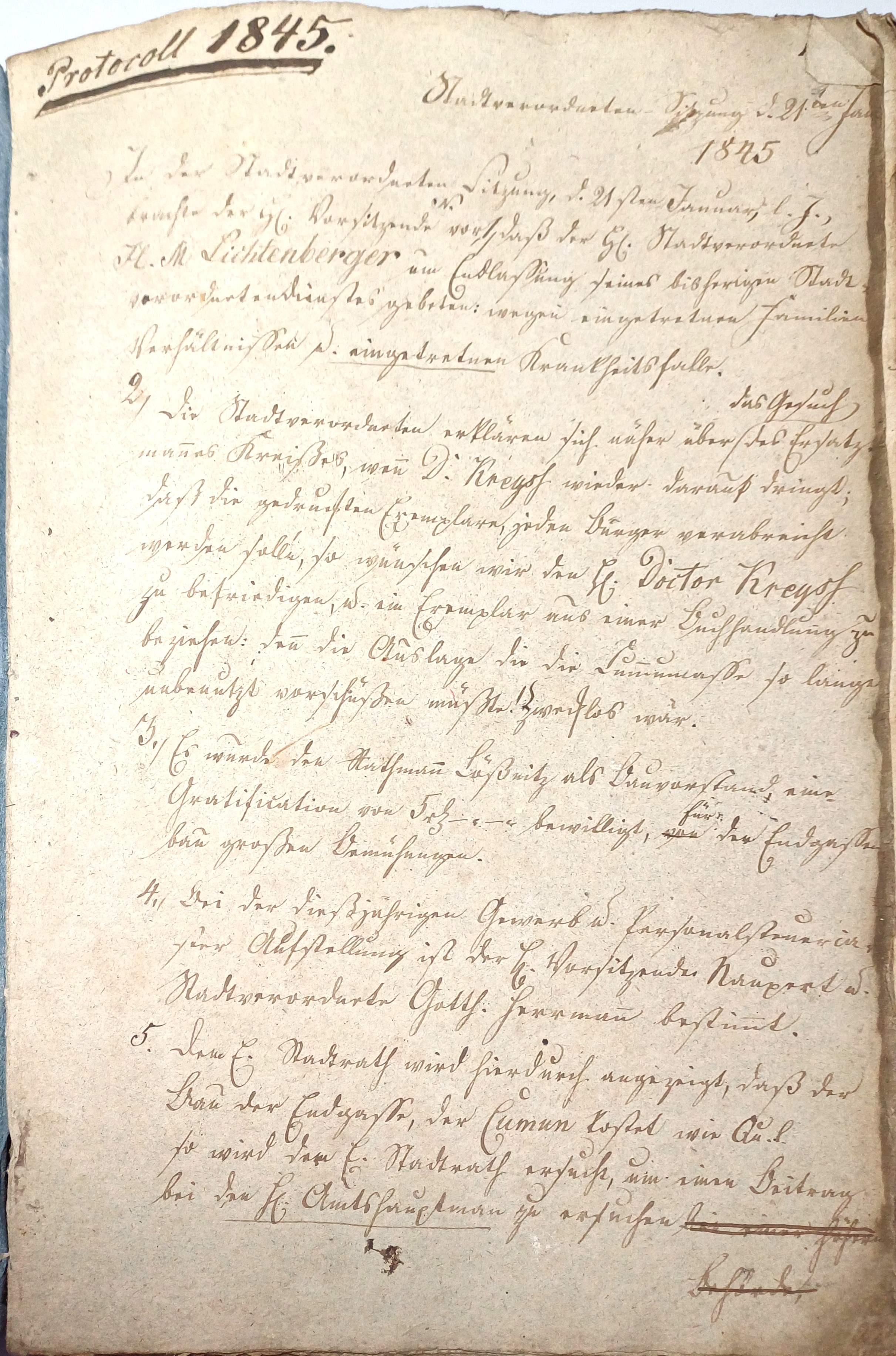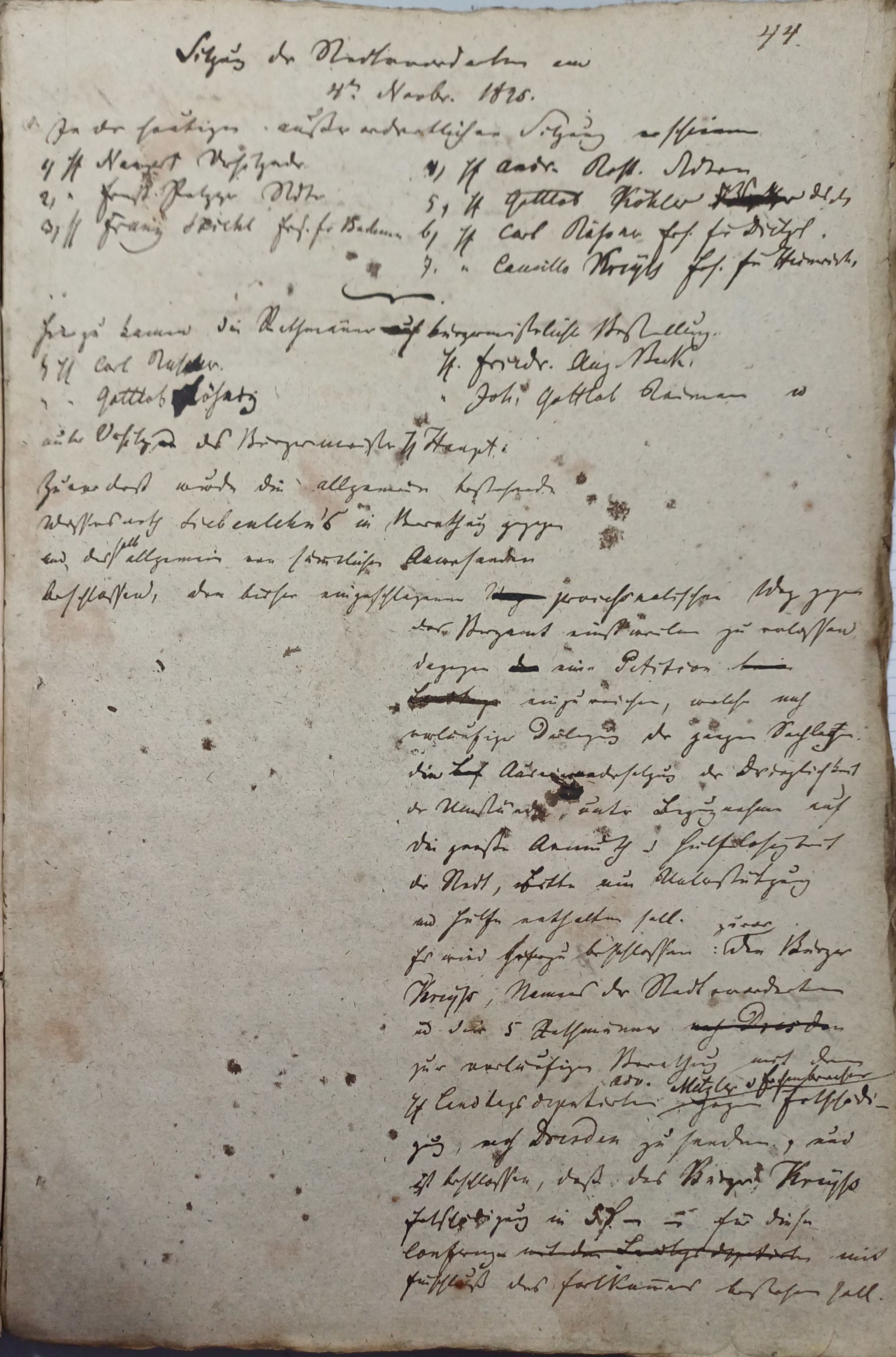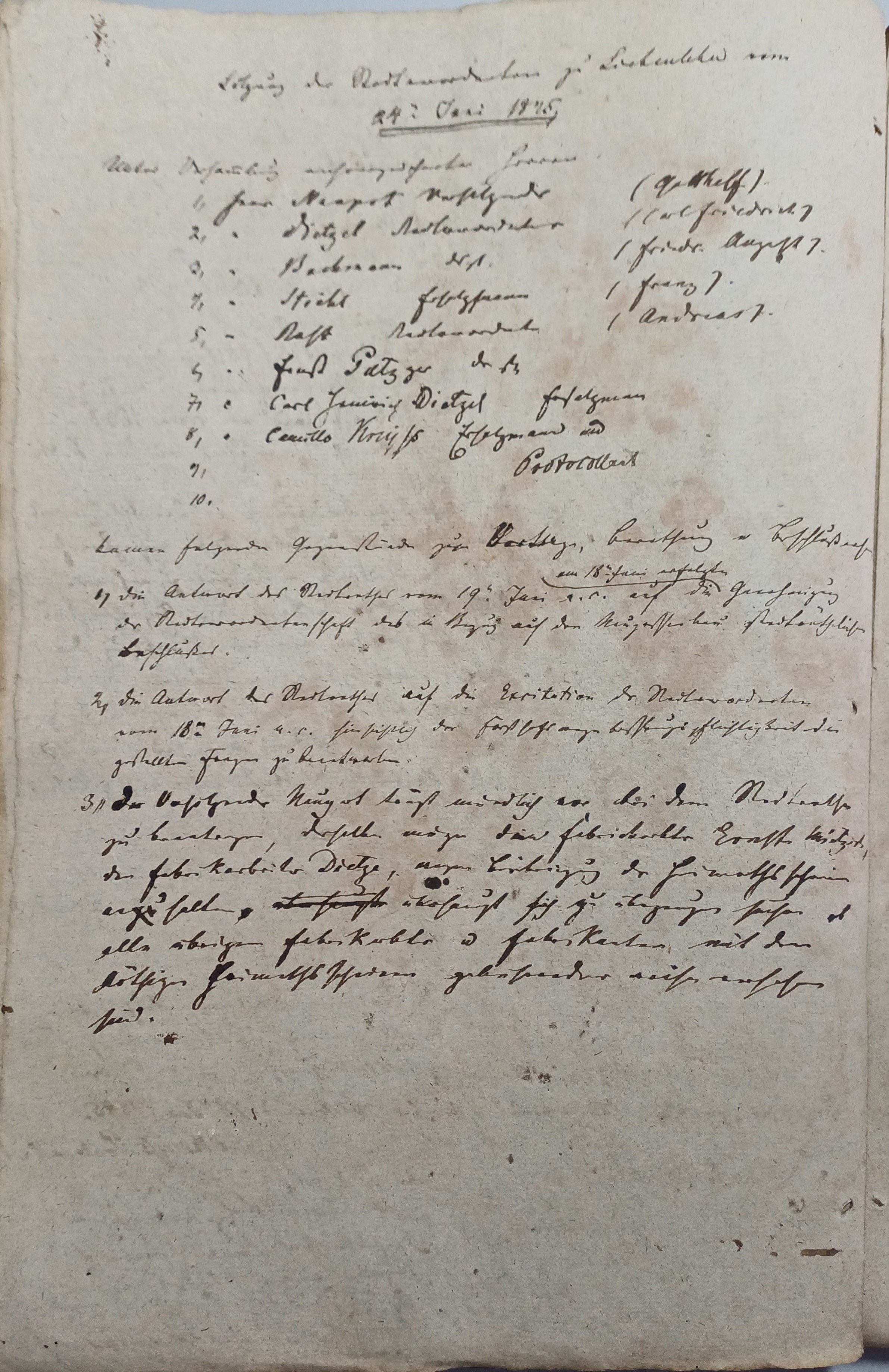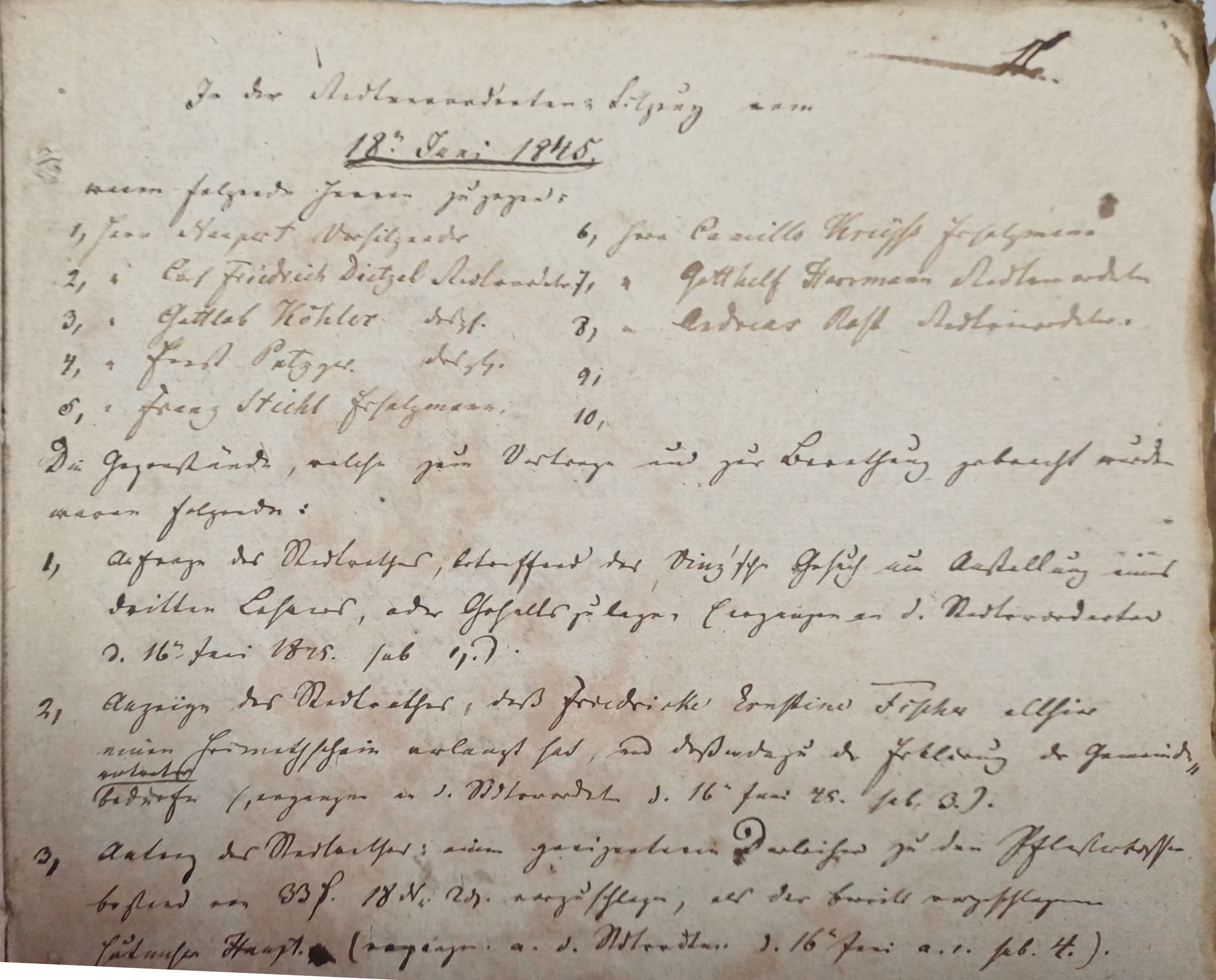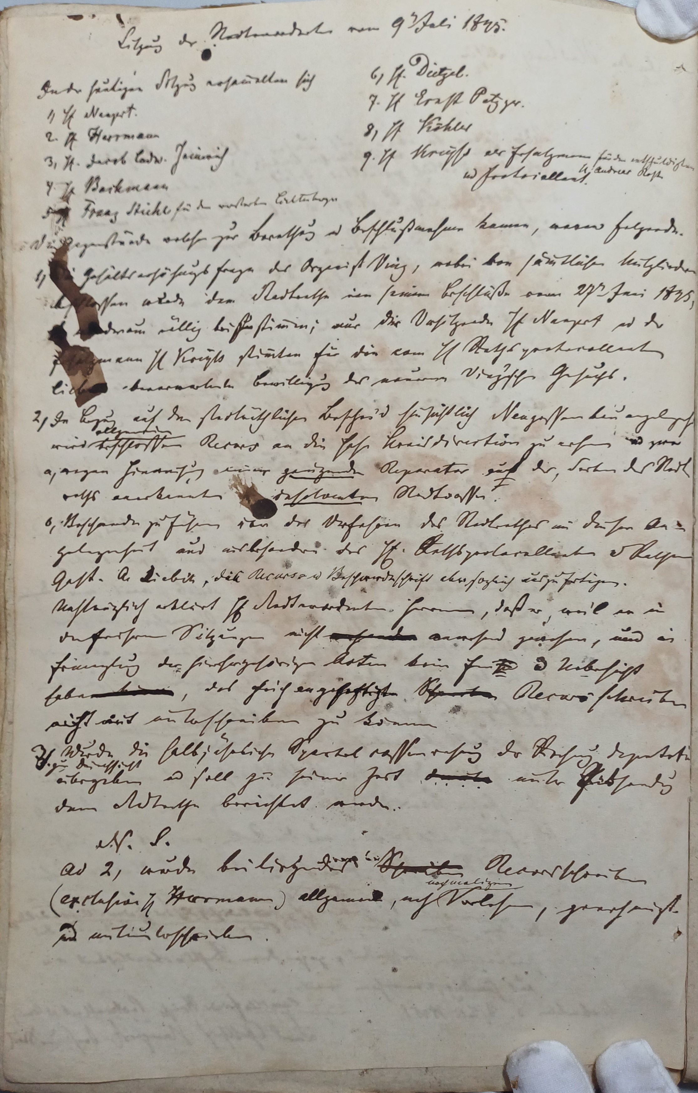 Die Querlinien unterteilen die Protokolle einzelner Sitzungen.