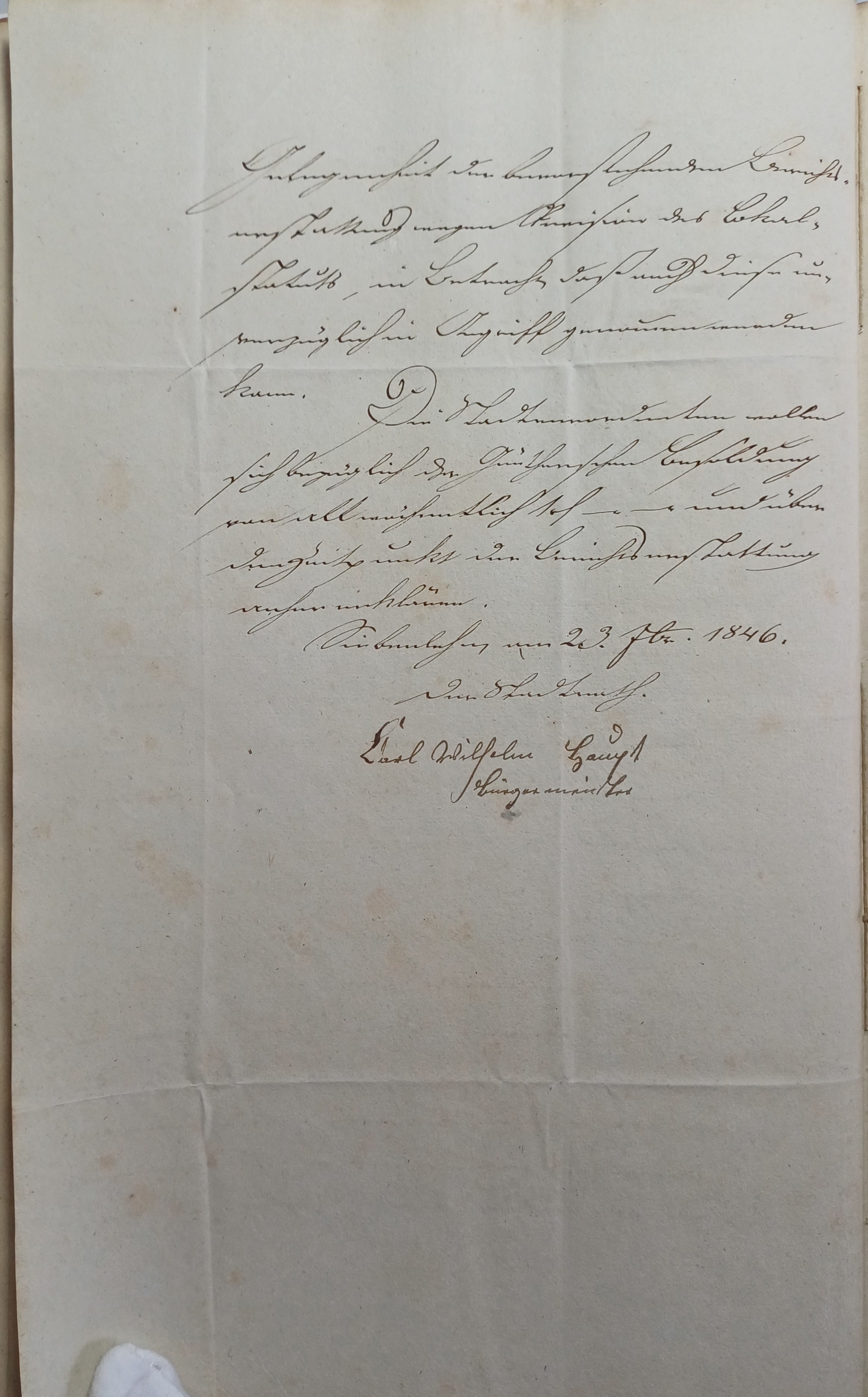 hierüber mit ihrer Ansicht und Erklärung zu ha.., dieselben aber