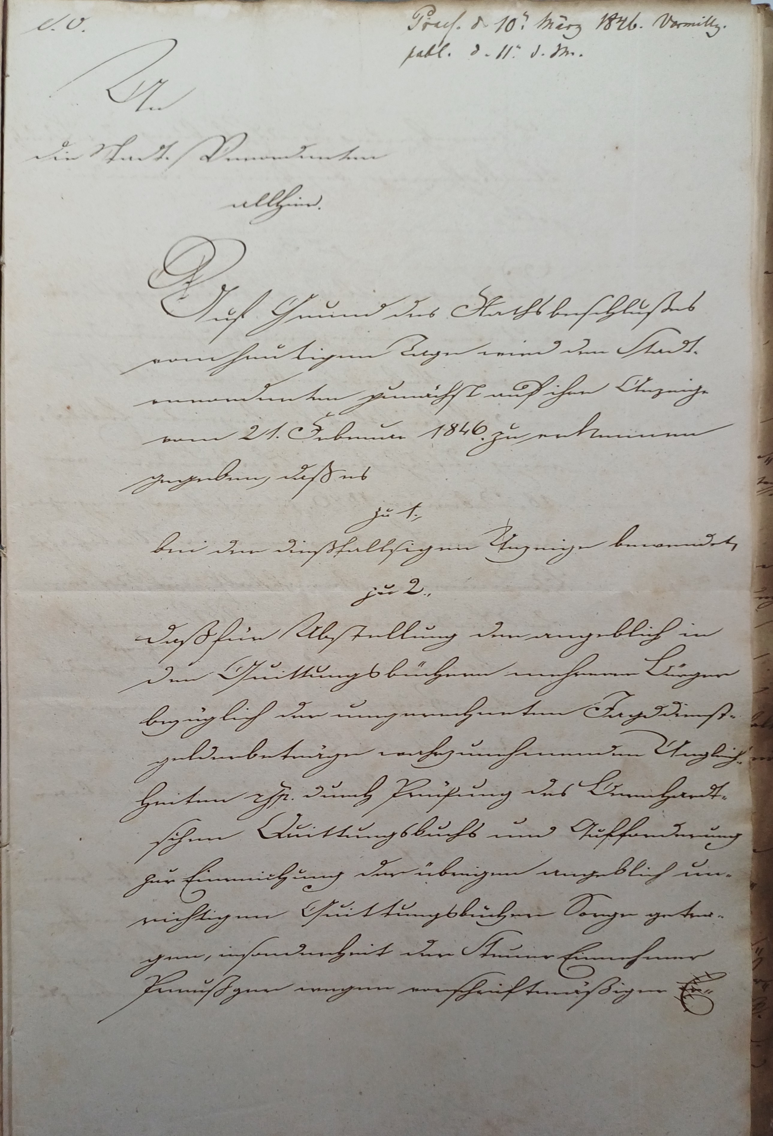 Der Stadtrath wird auch, um den Stand der Armenpflege zu documentiren,
