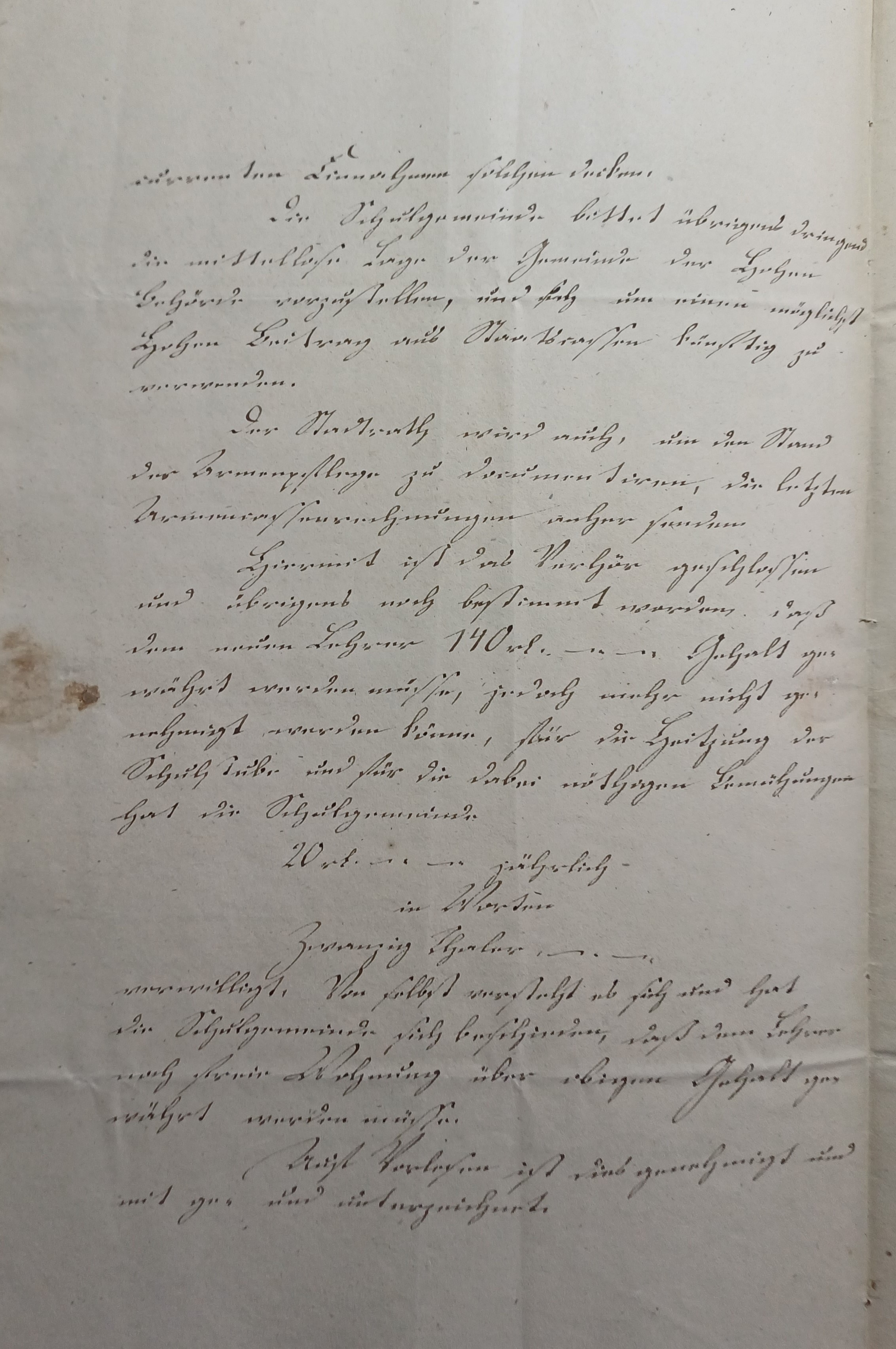 daß dem neuen Lehrer 140 [Taler] Gehalt gewährt werden könne,