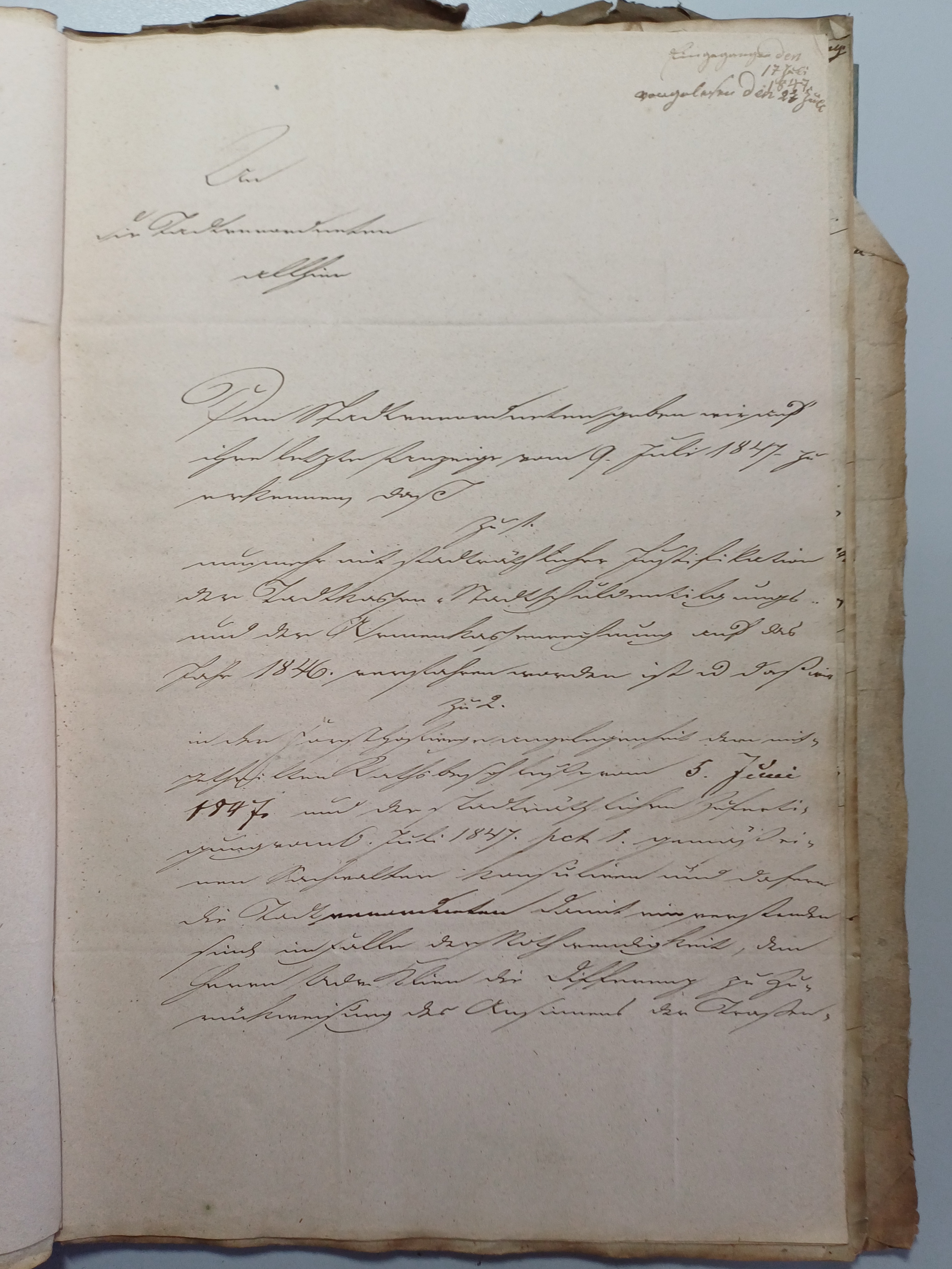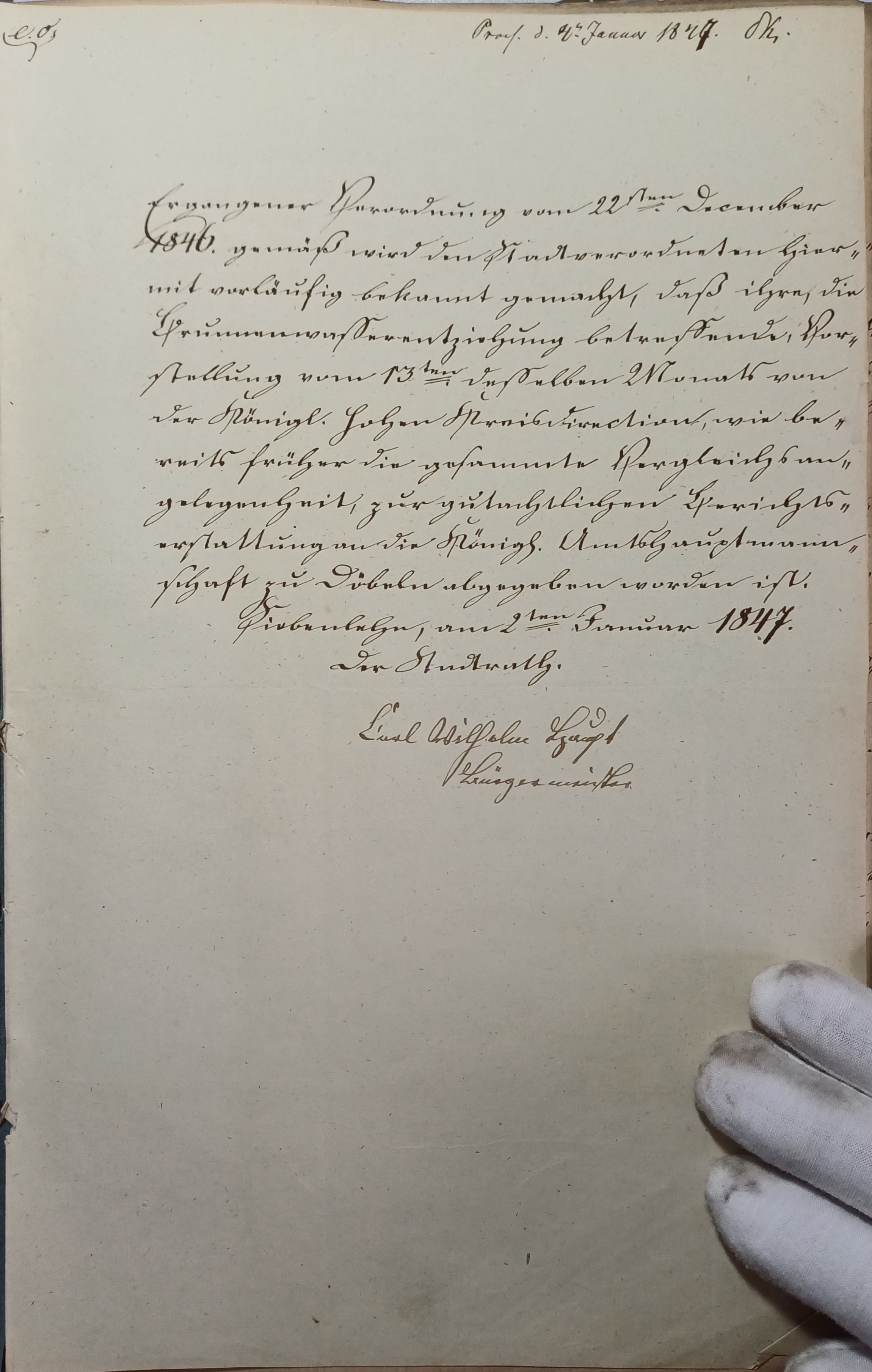Posteingang der Stadtverordnetenschaft Siebenlehn 1846