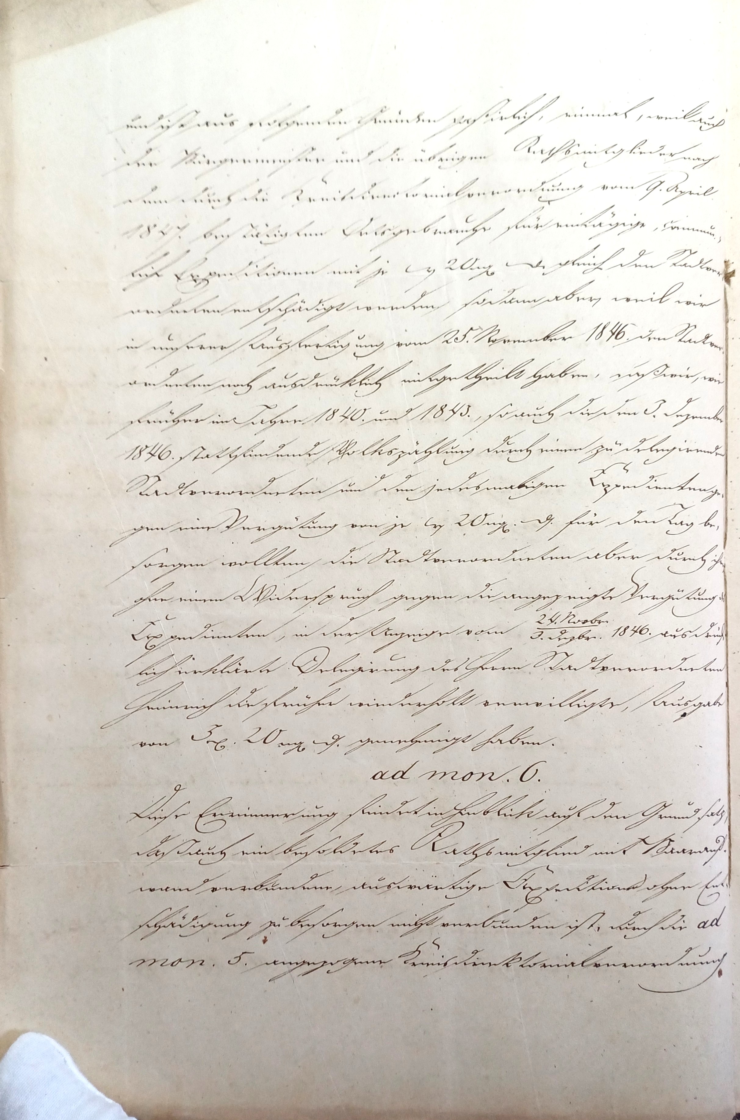vom 8n November 1846 Abforderung von Kosten in Sachen der Stadtverordneten 7a.,