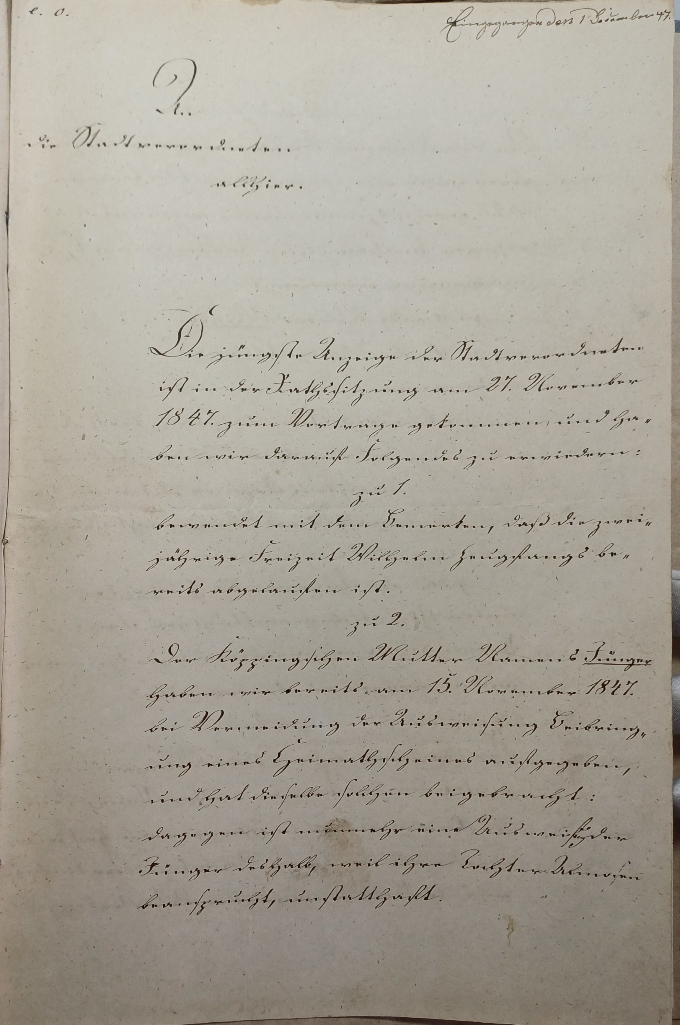 tober 1847. zu den Sitzungen des Stadtraths und der