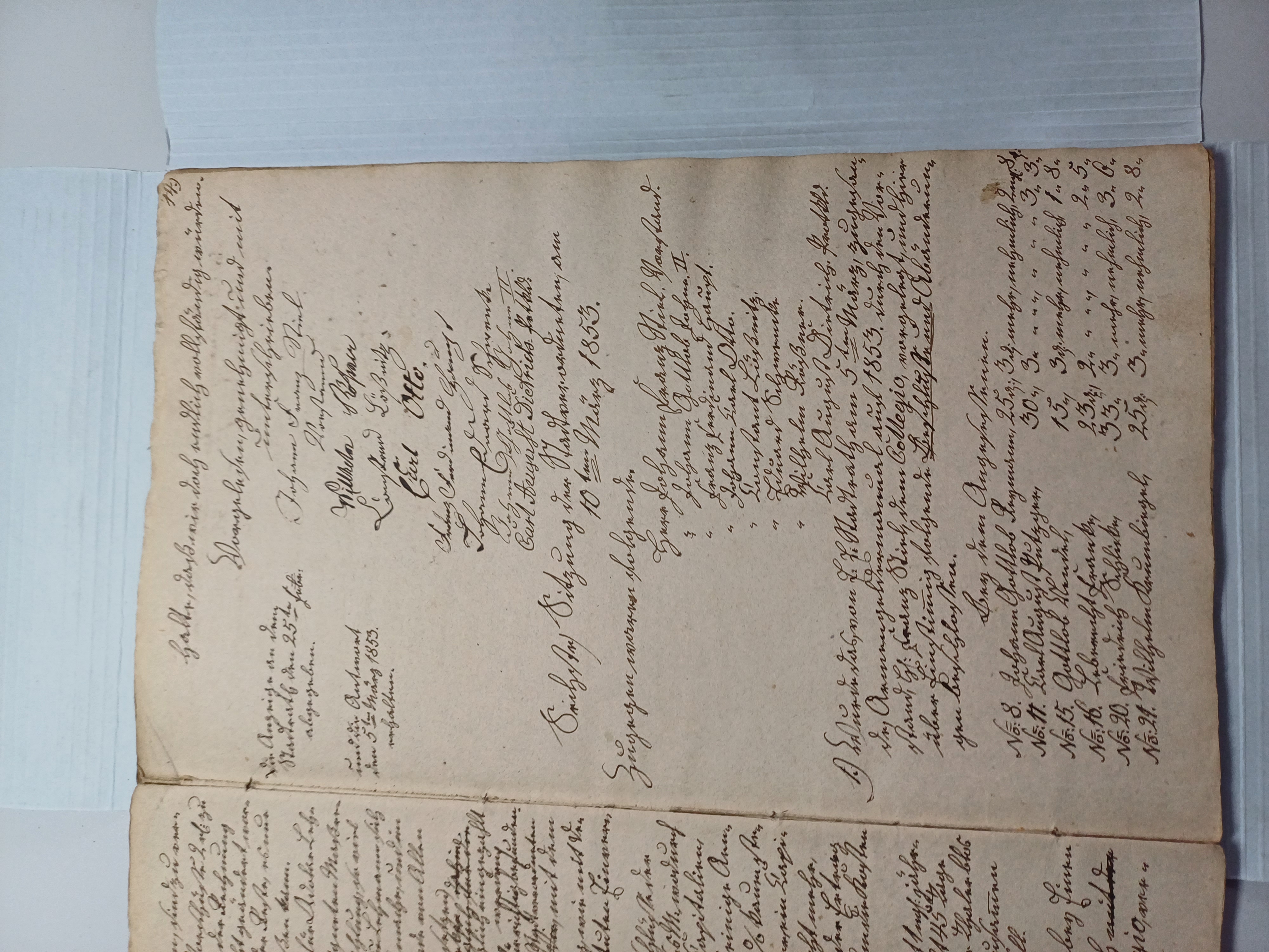 1., Wurde das, von E: E: Stadtrath am 5ten März, zugesande Armengeldermanual auf 1853. durch den Vorstand, H: Franz Stiel, dem Collegio, vorgelegt, und hier über Einstimmig folgende Beschlüsse und Abänderungen beschlossen.