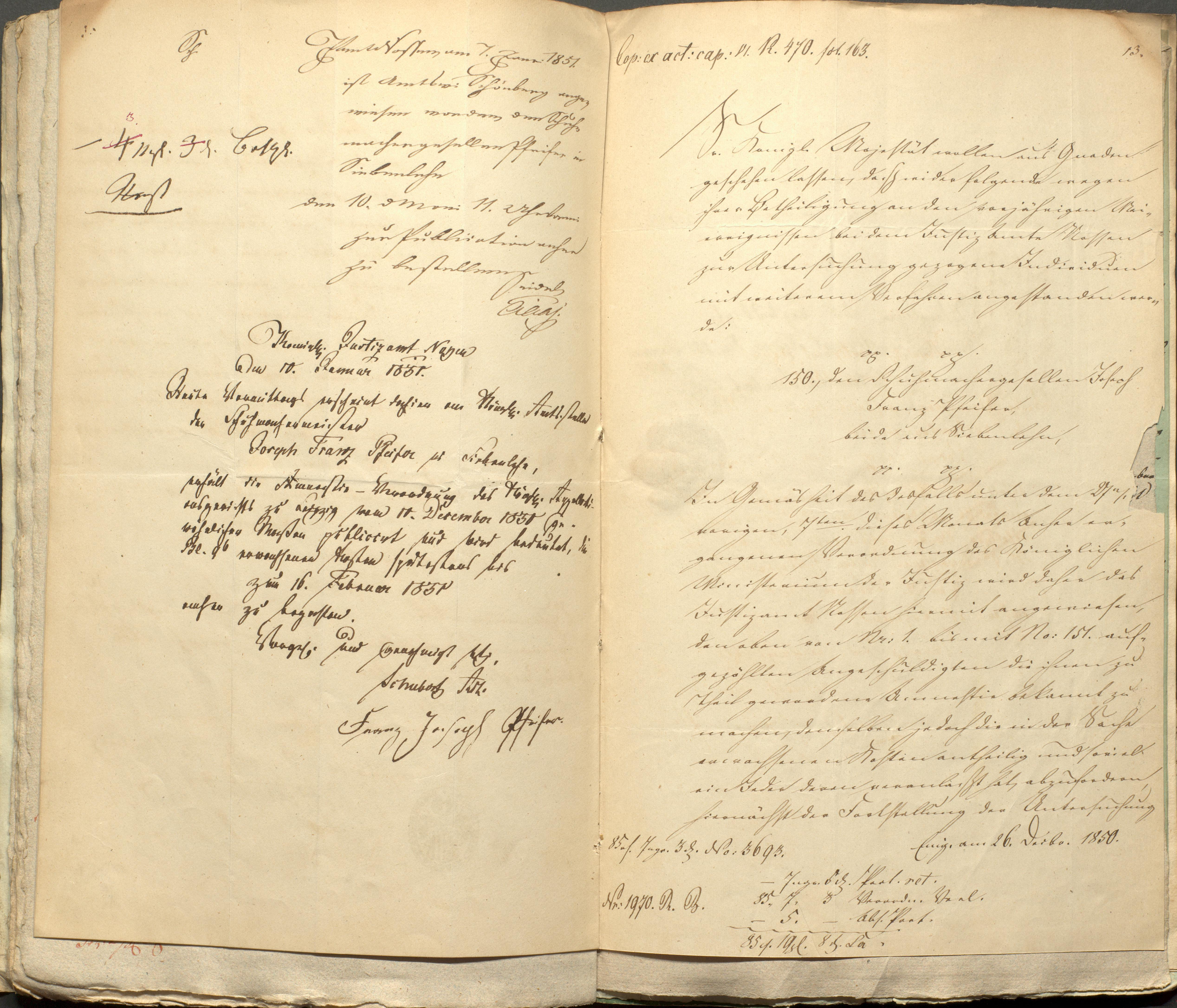 der Schumachermeister Joseph Franz Pfeifer in Siebenlehn erhält die Amnestie-Verordnung des Königl. Appellationsgerichts zu Leipzig vom 10. December 1851 gewöhnlicher Maßen publicirt und wird bedeutet, …